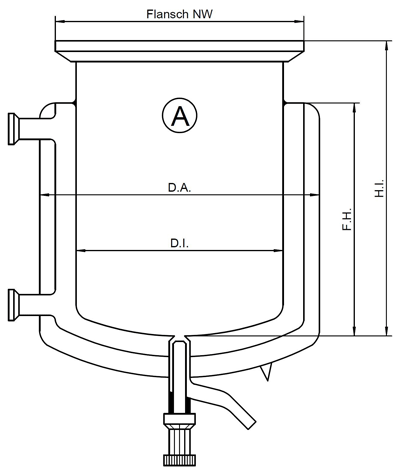 - Product Description: Heatable Glass Reaction Vessel; Vacuum jacket and Thermal Jacket; DN 15 Flange Jacket Connection: "J" Valve